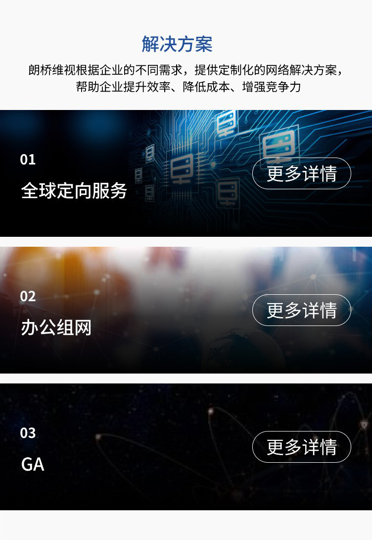 朗桥维视根据企业的不同需求,提供定制化的网络解决方案,帮助企业提升效率、降低成本、增强竞争力
